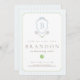 Celebrate your baby boy’s first birthday in sporty preppy style! This blue tennis invitation features watercolor rackets, a personalized crest, and timeless design—ideal for a charming “first match” party.