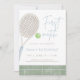 Celebrate your little champion’s big day with this blue tennis first birthday party invitation. Featuring a soft watercolor tennis racket and ball, this design has a classic preppy look that feels timeless and elegant.