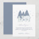 Cute adorable modern elegant winter woodland animal baby shower theme, Holiday baby shower theme, design feature pastel blue watercolor whimsical winter polar bear in the pine forest tree, snowflake and script calligraphy typography "Baby it's cold outside" you can customize your own unique text and color.