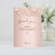 Um fundo dourado rosa, decorado com confetes. Grande letra manuscrita com floreios e o texto: Obrigado. Personalize e adicione sua nota de agradecimento e nome.