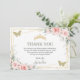 Este cartão de agradecimento Quinceañera chic apresenta delicadas flores rosa em aquarela, folhagem verde suave e borboletas em verde salvia. Personalize-o com seus detalhes de forma fácil e rápida, basta pressionar o botão personalizar para reorganizar e formatar o estilo e a colocação do texto. Também é ótimo para Sweet 16, aniversário de 18 anos, chá de noiva, chá de bebê e muitas outras ocasiões! (c) The Happy Cat Studio