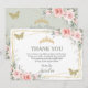 Cartão De Agradecimento Blush Rosa Floral Salvia Verde Borboleta Quinceañe