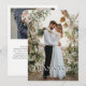 A stunning romantic wedding thank you card featuring a full-body shot of the bride and groom embracing under a lush bohemian floral arch adorned with white roses, pampas grass, and greenery. The design exudes a beachy, natural vibe with a soft, dreamy aesthetic. The front displays the text 'THANK YOU' in an elegant serif font, along with the names 'Emma & Smith' and the date. The back of the card features a close-up photo of the bride's bouquet and a heartfelt gratitude message thanking guests for their presence and gifts. Perfect for a boho-chic, rustic, or garden wedding theme.