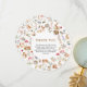 Charming watercolor woodland baby shower thank you design featuring cute forest animals—bunnies, hedgehogs, squirrels, deer, bears, birds—in a whimsical circle with mushrooms, berries, florals, leaves, and soft foliage on clean white background. This enchanting gender neutral theme brings magical nature vibes to express gratitude! Soft hand-painted style with elegant gold "Thank You" text and heartfelt message: grateful for love, gifts, wishes, kind words, and support for your little bundle of joy. Perfect for Boho forest celebrations or woodland nurseries—high-quality printable thank you card to complete your baby shower suite!