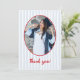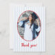 Envie obrigados sinceros com talento sulista usando este cartões de agradecimentos de graduação divertido com a frase "Boilin" Over with Obrigado. Parte da nossa coleção de graduação de marisco, este cartão inclui espaço para uma foto do formando, uma ilustração de lagosta desenhada à mão, e um fundo azul-claro listrado e lúgubre com letra vermelha ousada. A letra escrita à mão acrescenta um toque pessoal e caprichoso, fazer perfeito para formandos que querem expressar sua gratidão com personalidade e estilo. Quer você esteja agradecendo amigos, família ou convidados de festa, esta carta Classe 2025 traz charme, diversão e design inspirada por Cajun para cada caixa de correio.