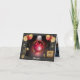 Elegante cartão de agradecimento de formatura, apresentando uma bola de discoteca vermelha brilhante com chapéus coloridos de formatura e decorações dos anos 80.