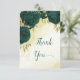Belo cartões de agradecimentos de casamento com flores verdes esmeraldas e folhas de ouro. PARA MAIS PRODUTOS CORRESPONDENTES, consulte a coleção acima ou entre em contato comigo