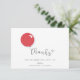 Projetado para combinar com o Convite de Balão Vermelho de Primeiro Aniversário, este cartão de balão simples escreve docemente agradecendo aos seus convidados. Personalize a saudação e a assinatura. A cor do balão também está disponível em rosa claro e azul.