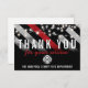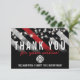 Este design apresenta uma bandeira de bombeiro com listras pretas e brancas e uma fina faixa vermelha também. Este cartões de agradecimentos é excelente por mostrar apreço e agradecimento a um bombeiro, tenente, capitão, ou chefe por seu serviço.