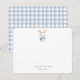 Coelhinha de água bonita Bunny do berçário do bebê... obrigado a anotar cartão com gingham azul e branco de volta.