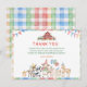 Este item é um design encantador e alegre perfeito para um dia grande! Ele apresenta uma cena viva de caserna de aquarela com animais de fazenda adoráveis como uma vaca, porco, ovelha e pato, todos celebrando com chapéus de festa e balões. É perfeito para os pais que querem fazer uma celebração divertida e com temas animais que se sinta quente e caprichosa. Itens correspondentes disponíveis.
