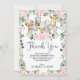 Esta bela design apresenta um grupo de adoráveis animais safari e flores rosas e femininas.