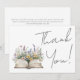 The front features a watercolor open book on the left side, with wildflowers and greenery spilling out in a soft mix of blush pink, purple, yellow, blue, and green flowers for a romantic, slightly vintage, storybook feel. To the right, “Thank You!” is displayed large in a flowing handwritten script, creating a warm and heartfelt focal point while keeping the design clean and elegant.
