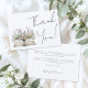 Designed with a soft white background and a timeless mix of handwritten script and classic serif fonts, this flat thank you card pairs beautifully with boho, vintage, or storybook-themed bridal showers. All wording, fonts, and background colors can be customized to match your style. Available as a printed card or digital download.