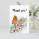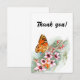 Cartão De Agradecimento Borboleta aquosa e flores rosa. Menina Floral