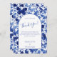 Cartões de agradecimentos moderno de padrão de arte de borboletas azul e branco que você pode personalizar para se adequar ao seu evento. Altere o texto para personalizar e deixe o vazio da mensagem se quiser gravá-lo manualmente. Arte original de Nic Squirrell.