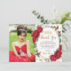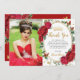 Personalize este cartões de agradecimentos de fotos de 16 anos de Quinceañera, floral vermelho-boho, fácil e rápido. Basta clicar no botão personalizar para editar os textos, alterar as fontes e as cores das fontes. Apresentando finitas flores vibrantes e vibrantes cor d'água, flores vermelhas, uma coroa princesa dourada e borboletas vermelhas e douradas. Itens correspondentes disponíveis no repositório. c) Paperie fina somerset