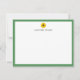 Cartão de nota personalizado com borda verde e cabeça pequena de girassol. Personalize com seu nome. A parte traseira das placas de anotações planas apresenta um padrão de bolinhas verde e branco.