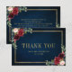 Elegante e moderno cartão de agradecimento de casamento romântico geométrico com aquarela floral apresenta belas rosas em aquarela burgundy/marsala, rosa bege, pêssego e azul-marinho com folhagens combinando em fundo de madeira rústica azul-marinho e moldura dourada. Perfeito para um casamento de outono/meio do verão. Encontre mais designs e variações correspondentes na minha loja "blissweddingpaperie". E sinta-se à vontade para entrar em contato comigo para personalização adicional ou itens correspondentes