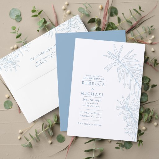 Dusty Blue Simple Botanical Leaves Wedding Criado por Amour Paperie