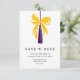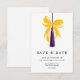 Graduation save the date enclosure card with a beautifully painted bow and tassel. Easily personalize the colors of the bow and tassel with the graduate's high school or college colors. To change the colors, click 'Edit using Design Tool' in the 'Personalize this Template' section.