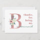 Cartão De Agradecimento Bridesmaid Rosa - Letra Floral Casada