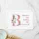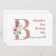 Cartão personalizado "obrigado você por ser minha dama de honra" com um belo design de letra floral. Este elegante cartões de agradecimentos de casamento está escrito em tons de rosa rosa, verde caçador e marfim empoeirados. Apresenta um brilho cor-de-rosa "B", embelezado com um buquê cor-de-rosa e marfim de flores e folhagem. A frase na frente lê "obrigados. por ser. minha dama de honra" em tipografia clássica com uma reviravolta moderna. A parte traseira tem caracteres de estilo rosa e manuscritos e a modelo está configurada para você personalizar (ou excluir) a mensagem, conforme desejar. Procure na nossa loja itens de coordenação.