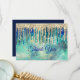 Cartão de agradecimento com gotas de glitter dourado e turquesa azul chic. Cartão de Natal cintilante e fofo com glitter. Perfeito para enviar para familiares ou amigos durante a época de festas, aniversários ou qualquer outra ocasião. Para torná-lo ainda mais especial, é adornado com belo glitter falso. Este design também pode ser transferido para qualquer produto na Zazzle. Você pode personalizá-lo com seu próprio texto e informações.