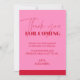 Cartão De Agradecimento Brilho Vermelho Rosa Quente Manuscrito