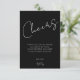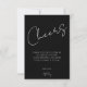 Envie um agradecimento elegante e sincero que combina perfeitamente com o seu conjunto de festa de 40º aniversário preto e branco. Este cartão moderno apresenta uma caligrafia ousada de “Brindes” em um fundo preto rico com uma mensagem minimalista e limpa, criando um visual sofisticado e atemporal. Personalize com seu nome e despedida para um toque final significativo após uma celebração marcante, reunião estilo coquetel ou evento de aniversário inspirado em gala.