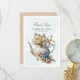 Cartão elegante, rústico e caprichoso com ilustrações de aquarela de bule de chá com flores de rosa brancas roxas e azuis com fundo de céu. Este cartão é perfeito como um presente personalizado.