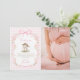 Bunny Pink Bow Gingham Baby Shower Photo Thank You Card