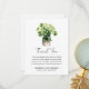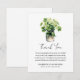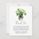 Um lindo cartão de agradecimento de pêsames, apresentando um fundo branco clássico, um vaso de vidro cheio de um buquê de trevos de shamrock botânicos verdes. O texto "Obrigado" e uma mensagem personalizada de agradecimento da família para enviar a amigos e familiares que mostraram bondade durante o seu momento de luto.