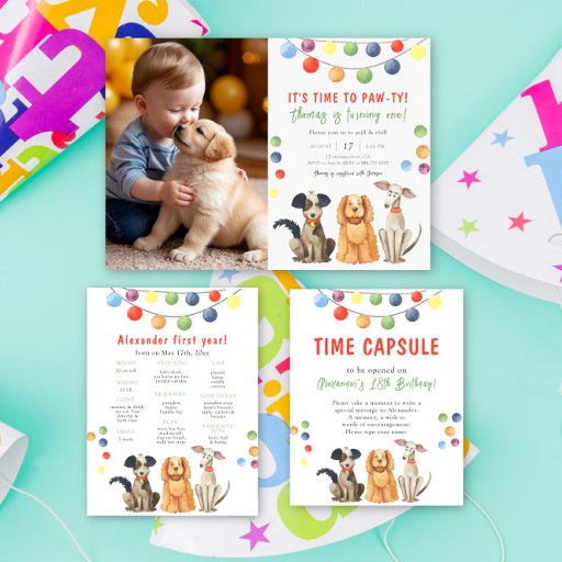 Cartão De Agradecimento Cachorro de Aquarela Primeira Festa de aniversário