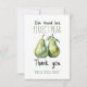 Agite a celebração com este Cartão de Agradecimento de Chá de Panela com Tema de Frutas Pêra! 🍸✨ Com uma aquarela de um par de peras, este design é a mistura perfeita de elegância e diversão. A arte suave em aquarela e a tipografia estilosa criam um design moderno e elegante para chá de panela, perfeito para a noiva que ama um tema clássico e ao mesmo tempo divertido.