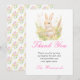 Lindo cartão de agradecimento de café da manhã de Páscoa com um coelho adorável e flores rosa e amarelas. As palavras podem ser alteradas para atender aos seus próprios detalhes ou requisitos