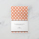 Cartões de agradecimento com um padrão de bolinhas sortidas com tamanhos alternados de círculos brancos sobre um fundo laranja estilo café. "obrigado" é impresso diagonalmente em branco na frente sobre uma faixa preta diagonal no canto inferior direito. O interior é impresso personalizado com o seu próprio texto, ou pode ser facilmente deixado em branco para escrever à mão seus próprios sentimentos de gratidão. Ao redor desta área de texto modelo está o mesmo padrão de bolinhas sortidas, um elemento único em oposição ao típico interior branco. Este estilo e esquema de cores tornam estes cartões uma escolha apropriada para Chás de Panela, Chás de Bebê e Aniversários.