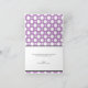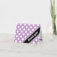 Cartões de agradecimento com um padrão de bolinhas sortidas com tamanhos alternados de círculos brancos sobre um roxo estilo café. "obrigado" é impresso diagonalmente em branco na frente sobre uma faixa preta diagonal no canto inferior direito. O interior é impresso personalizado com o seu próprio texto, ou pode ser facilmente deixado em branco para escrever à mão seus próprios sentimentos de gratidão. Ao redor desta área de texto modelo está o mesmo padrão de bolinhas sortidas, um elemento único em oposição ao típico interior branco. Este estilo e esquema de cores tornam estes cartões uma escolha apropriada para Chás de Noiva, Chás de Bebê e Aniversários.