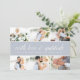 Os cartões elegantes de agradecimento apresentam seis das suas fotos favoritas de casamento em uma colagem com uma faixa de cinza de nevoeiro correndo pelo centro. "Com amor e gratidão" ou sua mensagem personalizada aparece em um roteiro de caligrafia branco, com seus nomes e dia de casamento embaixo. Personalize a parte traseira com uma mensagem pré-impressa ou exclua o texto de amostra se preferir uma nota manuscrita.