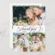 Este cartões de agradecimentos de casamento apresenta uma carta caligráfica elegante e romântica com 4 fotos e texto personalizado no verso. Perfeito para casamentos, aniversários, graduações e outros eventos. Para uma personalização mais avançada deste design, clique no BOTÃO FERRAMENTA DESIGN AZUL acima!