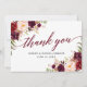 Cartão De Agradecimento Calliografia Floral Burgundy Casamento