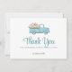 Um cartão de agradecimento de caminhão de abóbora azul com tema de jardim ou outono. Uma maneira perfeita de agradecer aos seus convidados por comparecerem à sua festa.
