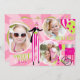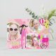 Doce e divertido tema de carnaval agradecimento cartão com 3 inserções de fotos. Em tons de rosa e verde lima.