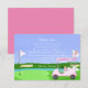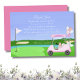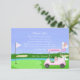 Este cartão de agradecimento para chá de noiva temático de golfe é criado com a noiva à beira do casamento no centro do seu design. Ele apresenta um green de putting em forma de coração e um alfinete de bandeira tremulando ao vento, estampado com as palavras "Noiva à Beira do Casamento". O carrinho de golfe é festivamente adornado com champanhe, presentes, uma tiara e um bolo de chá de noiva ilustrado de forma intrincada. Um véu de noiva elegantemente drapeja do saco de golfe, adicionando um toque charmoso. Projetado pela Daphsam, este cartão de agradecimento único vem com um modelo fácil de usar para garantir um planejamento sem estresse.