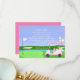 Este cartão de agradecimento para chá de noiva com tema de golfe é criado com a noiva à beira do casamento no centro do seu design. Ele apresenta um green de putting em forma de coração e um alfinete de bandeira tremulando ao vento, estampado com as palavras "Noiva à Beira do Casamento". O carrinho de golfe é festivamente adornado com champanhe, presentes, uma tiara e um bolo de chá de noiva ilustrado de forma intrincada. Um véu de noiva elegantemente drapeia do saco de golfe, adicionando um toque charmoso. Desenhado por Daphsam, este cartão de agradecimento único vem com um modelo fácil de usar para garantir um planejamento sem estresse.