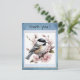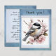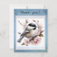 A delicate thank‑you card featuring a charming chickadee surrounded by soft pink blossoms. The gentle scene evokes warmth, serenity, and heartfelt appreciation. Perfect for expressing gratitude with grace, this design carries the quiet beauty of nature and the tender joy of saying “thank you” from the heart.