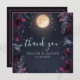 Expresse sua gratidão com este lindo cartão de agradecimento de casamento "Midnight Garden Moon". Com uma lua cheia mística emoldurada por elementos florais de burgundy escuro e meia-noite, este design é perfeito para casais que adoram temas celestiais e estética romântica e sombria. Personalize com seus nomes e data de casamento para uma nota sincera de agradecimento aos seus convidados. Ideal para adicionar um toque de elegância e magia à sua correspondência pós-casamento, tornando sua celebração com tema celestial inesquecível.