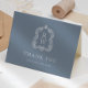 Obrigado seus convidados de casamento com esses cartões elegantes e empoeirados de obrigado azul e branco, com um clássico monograma inicial dentro a vintage. As palavras "obrigado você" aparecem na tipografia decorativa. Adicione seus nomes abaixo. O dentro da placa é vazio para que você possa adicionar uma nota manuscrita pessoal a cada amigo ou membro da família.
