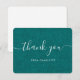 Cartão de agradecimento rústico com fundo de burlap verde e fonte moderna. Personalize facilmente este cartão de agradecimento para um casamento, chá de noiva, aniversário ou outra ocasião.