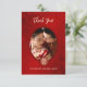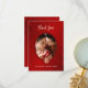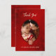 Este cartões de agradecimentos de casamento chinês apresenta um sinal dourado de felicidade dupla e palavras "obrigado você" em um moderno guião manuscrito em um fundo de ximersão vermelho. Com um obrigado de casamento personalizado você escreve, sua foto, seus nomes e data de casamento.